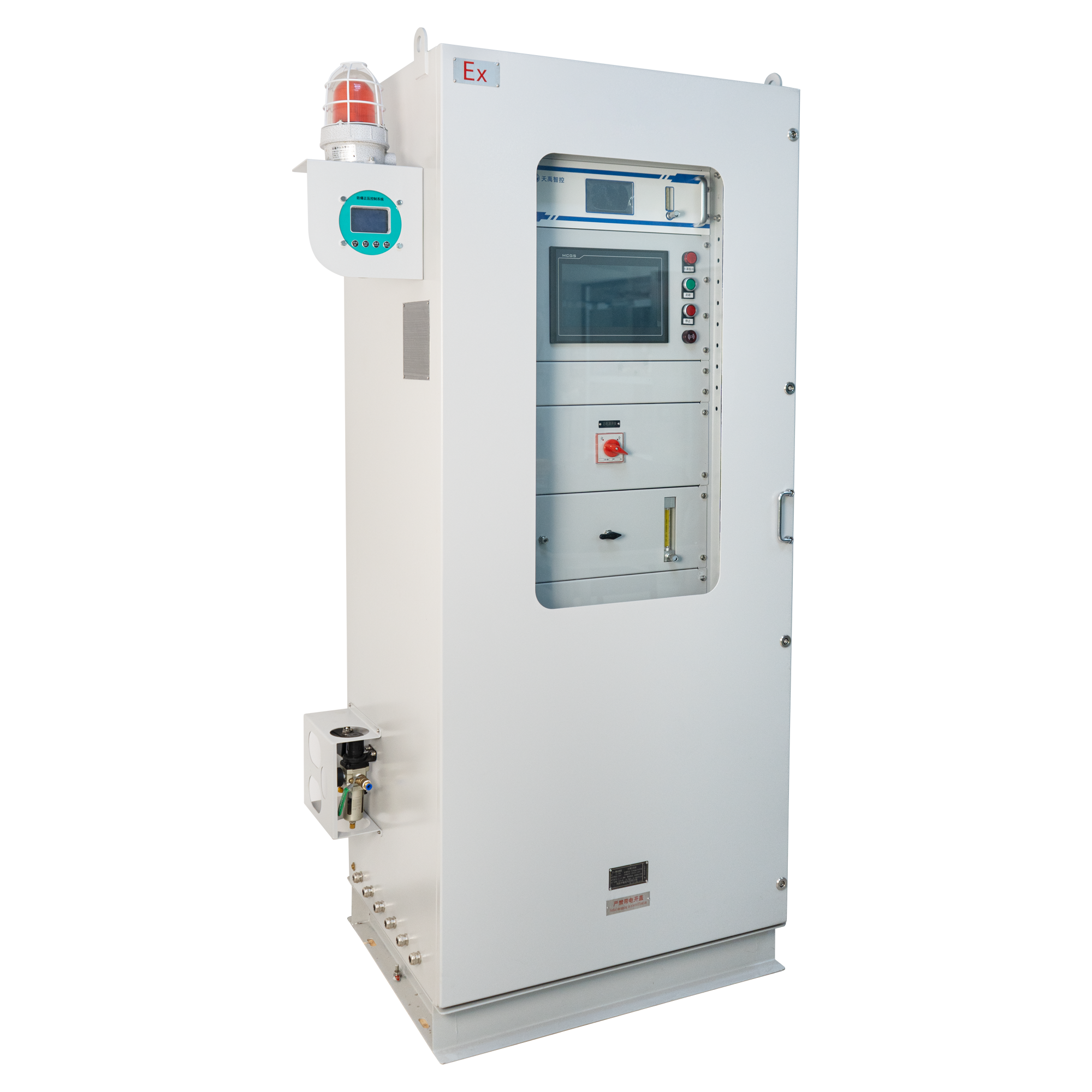 • 正壓防爆在線分析系統 TY-8300EX TY-8300EX型正壓防爆在線分析系統是天禹智控自主研發新型在線監測系統,該產品基于非分光紅外(NDIR)氣體分析技術、長壽命電化學傳感技術以及基于MEMS的熱導技術,可同時在線測量煤氣的熱值,以及CO、CO2、CH4、H2、O2、CnHm等氣體的體積濃度。預處理系統采用冷干法設計,關鍵部件采用原裝進口,可根據現場不同的工況條件,為客戶定制解決方案,保證分析系統的可靠運行。