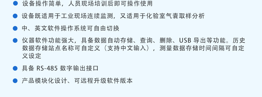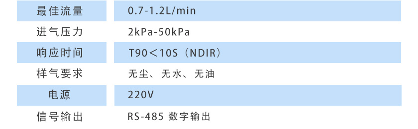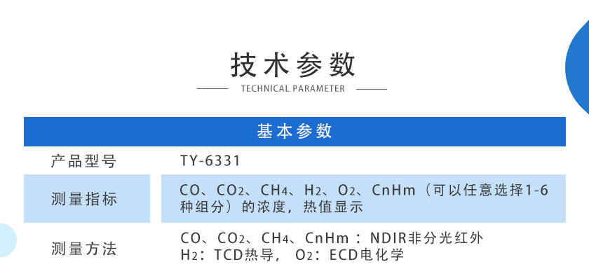 CO、CO2、CH4、CnHm :NDIR非分光紅外 H2:TCD熱導(dǎo), O2:ECD電化學(xué) |