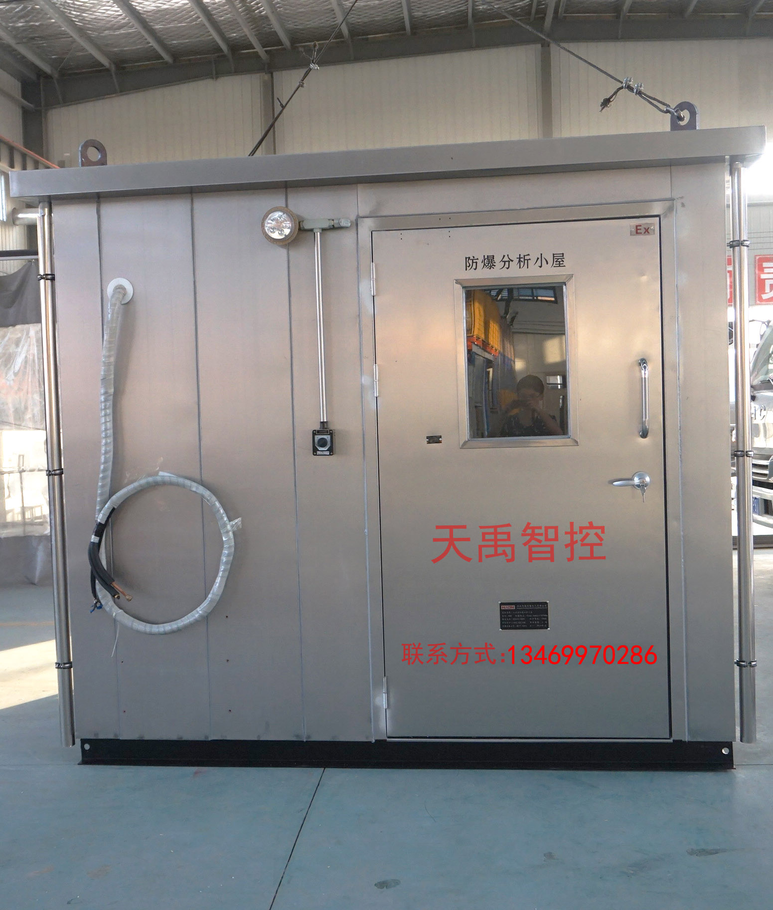 氣體分析小屋是八十年代中期國際上開始流行的一項新技術。它集工業氣體在線分析儀器儀表的組合、成套、安裝、應用于一體,首先在煉油、化工企業中得到廣泛應用。氣體分析小屋的規范化、專業化設計使氣體分析儀表的現場安裝、維護更加方便,并為氣體分析儀表提供了良好的操作和運行環境,在工藝裝置中得到了越來越多的應用。天禹智控生產的氣體分析小屋采用強制通風正壓防爆的方法,防止因內部釋放可燃性氣體以及外部爆炸性環境而引起的爆炸危險。氣體分析小屋采用型鋼結構,內外墻均為鋼板,中間為隔熱層。分析小屋適用于石油、化工等行業Ⅱ類1區或2區場所的爆炸性環境。